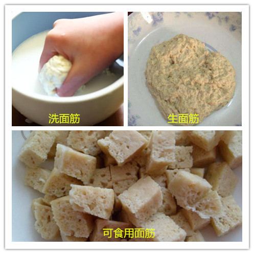 其实不然,面粉中的主要营养物质是淀粉,其次还有蛋白质及少量的脂肪、维生素、矿物质等。但是在我们刚刚提到“洗面”的这个步骤中,几乎去掉了绝大部分的蛋白质等营养物质,留下的几乎都是淀粉,如果作为主食来食用,饱腹感会比去掉蛋白质之前低很多,所以单吃它就容易饿,如果能够搭配着吃一些肉蛋类、豆制品等高蛋白质食物,就可以很好地解决这个问题。