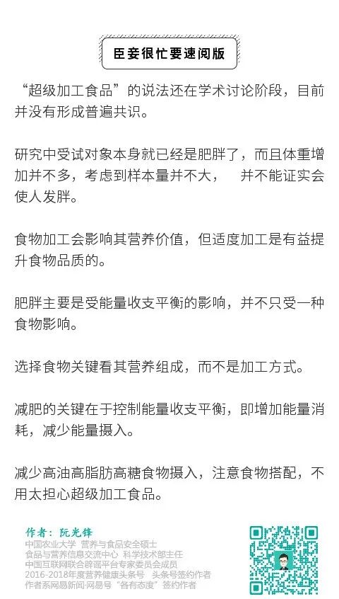 总的来说,还不能得出“吃加工食品就会使人肥胖”的结论。