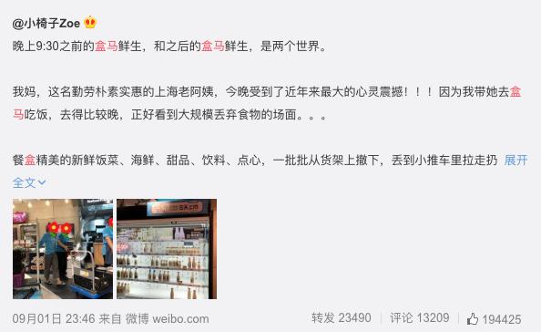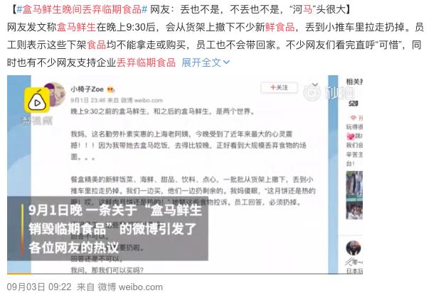 “晚上9:30之前的盒马鲜生,和之后的盒马鲜生,是两个世界。”最近,有网友发文爆料盒马鲜生晚间丢弃临期食品。文章称,盒马鲜生在晚上9:30后,会从货架上撤下不少新鲜食品,丢到小推车里拉走扔掉。而顾客提出拿走或者购买都不可以。对此,网友们议论纷纷。有人称,很多东西还能吃却扔掉很可惜,造成了巨大的浪费;但也有人对此表示理解,称商家如果不处理临期商品会惹来麻烦。