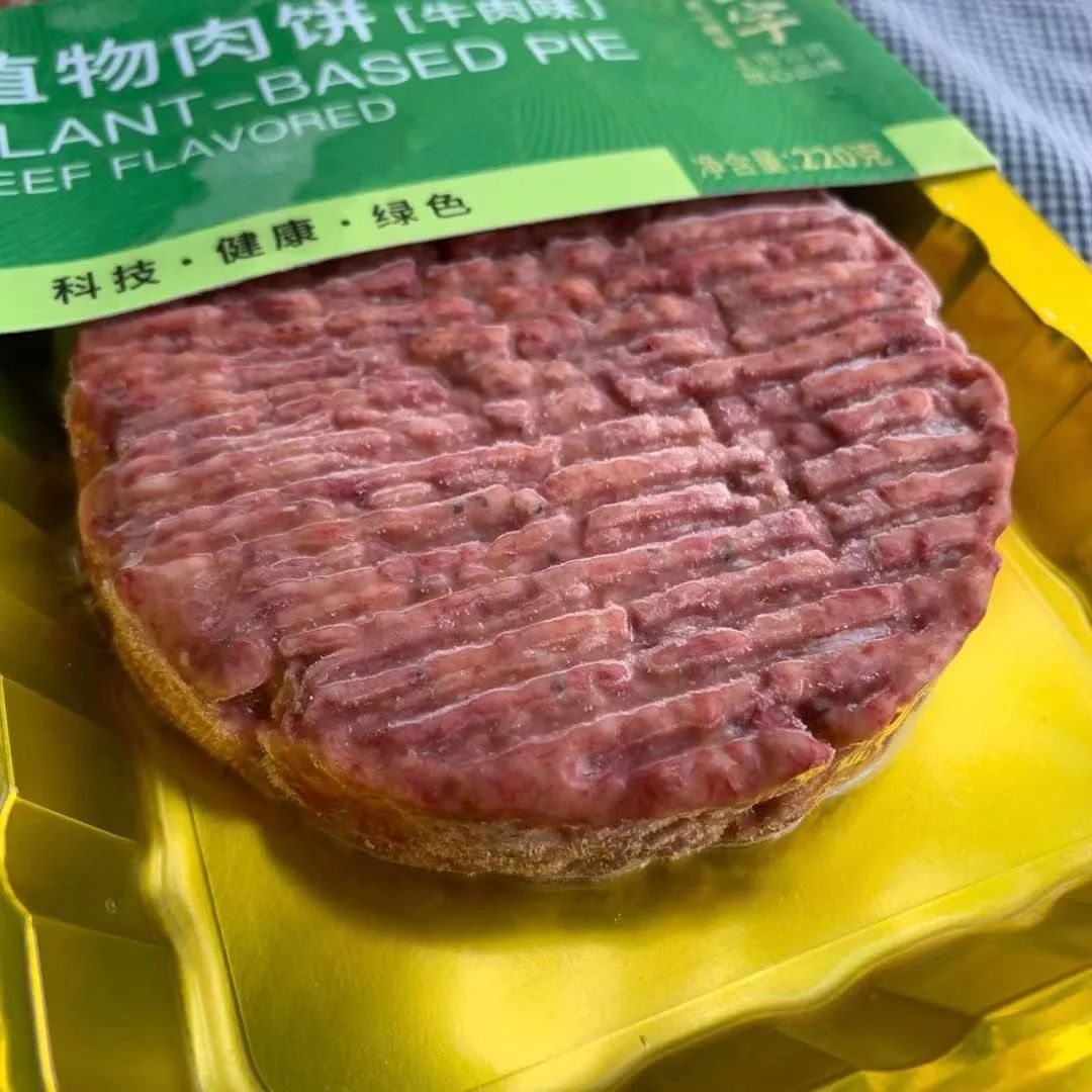 从外观上来看,人造肉仿得还是挺逼真的,肉饼的颜色偏红。撕开外面的塑料包装后,一股浓浓的黑椒牛肉味立刻扑鼻而来。再用手摸一下,手感也和真肉没什么太大差别。