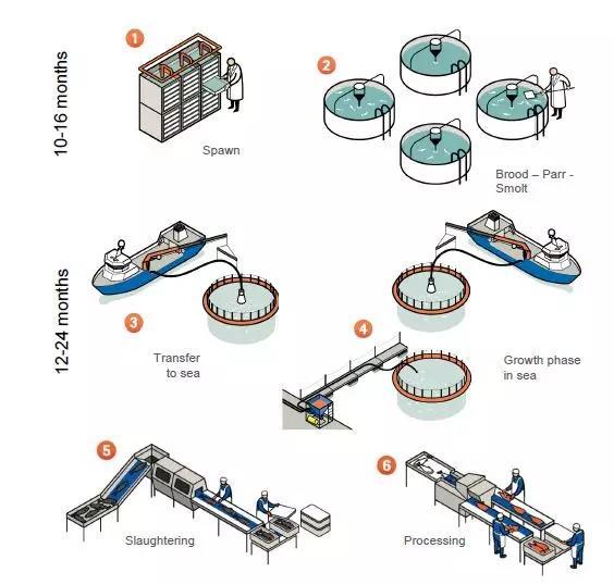 三文鱼生产流程。(图片来源:Marine Harvest)