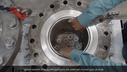 再将这个果冻质地的蛋清水凝胶放入特殊的转化装置中,将蛋清水凝胶中的液体置换成容易挥发的气体。
