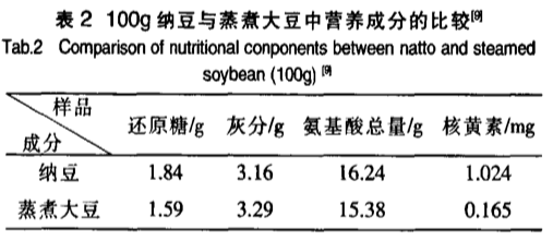 可以看出纳豆跟大豆本身的营养价值,总体来说相差不是很大。
