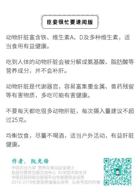 实际上,如果为了补肝而吃很多动物肝脏,还得当心养肝不成反伤肝。