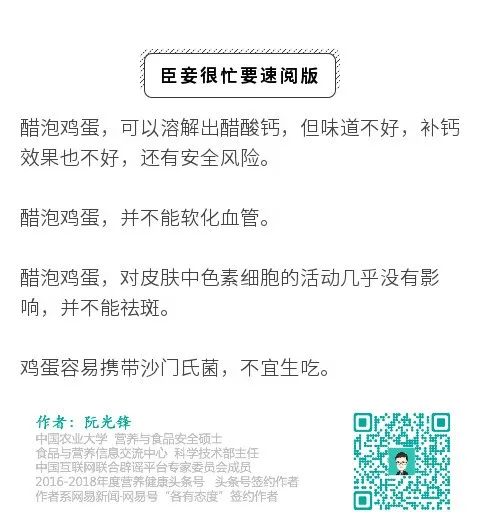醋泡鸡蛋能软化血管、祛斑美容?盘点关于醋泡鸡蛋的4个传说阮光锋营养师 2020-04-07 |
