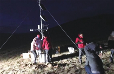 8月11日,科考队到达改则,就进入到藏北的阿里地区了,一项艰巨的任务摆在了他们面前:在相对偏远的地点建一个综合自动观测站,这个自动站的建立较前两个在冰川脚下安装的站要复杂不少。在夜幕中,科考队员们挑灯夜战,靠车灯和手电筒照明,确保了施工能持续。寒风中,已无退路,只能前行,一直干到11点半多,残云散去,满天星斗,一座自动站终于耸立在了荒原之上。