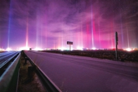 光柱(Lightpoles)是一种罕见而有趣的自然现象,只有在非常寒冷的夜里才有可能发生。当天气很冷,冰从高层落下时,会形成平板,形状就像是一些冰晶。冰晶反射的光几乎完全是垂直的,因此产生光柱效应。2018年12月13日凌晨3时,在青海省海西州茶卡镇就上演了一场“极美光柱秀”,吸引了众多摄影爱好者驻足拍摄。