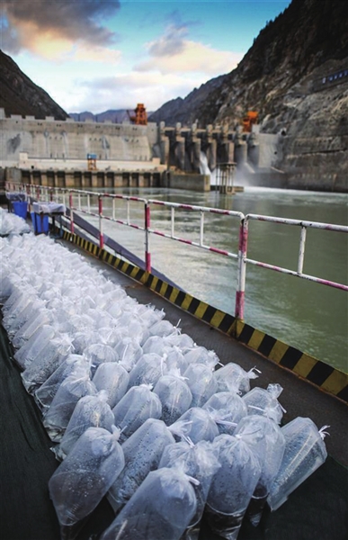 图为西藏藏木水电站准备放流的鱼苗。