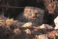 近日,青海海西蒙古族藏族自治州电视台记者在柴达木盆柏树山森林地质公园拍摄到了兔狲活动的画面。 据悉,兔狲在野外种群分布极少,此次发现,表明柴达木盆地区域生态环境进一步改善。 图为兔狲在享受冬日暖阳。据中新社