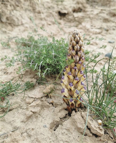 此次调查发现的盐生肉苁蓉为列当科,肉苁蓉属寄生植物,为荒漠区分布的重要中藏药资源,具有补肾阳、益精血、润肠通便等功效,素有“沙漠人参”之称号,历史上就被西域各国作为进贡中原朝廷的珍品,是极其名贵的中药材。盐生肉苁蓉还起到防风固沙、改良土壤、增加局部空气湿度等改善生态的作用。该新纪录的发现对青藏高原中藏药植物资源的分布和可持续利用具有重要意义。