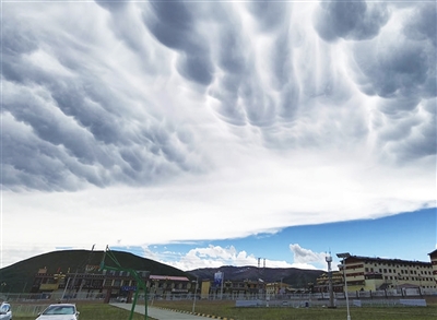 青海省果洛藏族自治州甘德县上空出现少见乳状云。 图片来源:中国天气