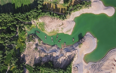 龙羊峡,位于海南藏族自治州共和县境内的黄河上游,大自然用鬼斧神工的创造力,把峡谷两岸镌刻得层峦叠嶂、气势磅礴。从岸畔的村落望去,峡谷巍峨壮美,黄河水碧波荡漾宛若大海。在阳光的沐浴下,一切景观随着光线强弱变幻色泽,像极了缓缓舒展的画卷,景色绝美。融入其中,便可感受山水赋予的无穷乐趣。图为新华社近日航拍的龙羊峡景色。
