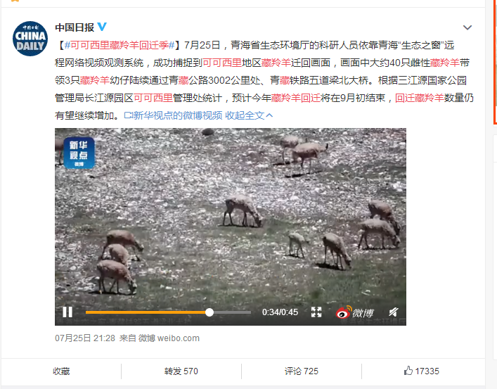 守护雪域高原“精灵” 青海迎来藏羚大规模回迁科普中国网 2020-08-18 |