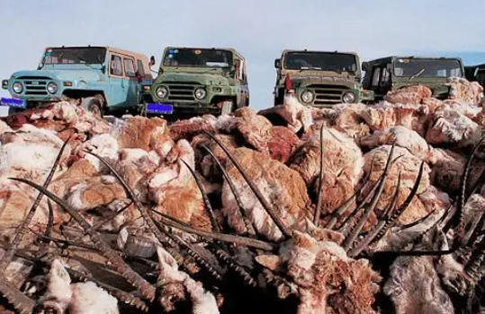 生活在高寒荒漠地带的藏羚身上长着被誉为“羊绒之王”的藏羚绒,可以抵御-50℃的严寒,被称为“软黄金”。用藏羚绒加工而成的披肩叫做“沙图什”,一条沙图什售价高达5000~30000美元,而编织这样一条披肩,得猎杀三到四只藏羚。受巨额利润的诱惑,藏羚遭到盗猎者的大肆猎杀,数量骤减。