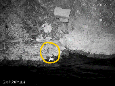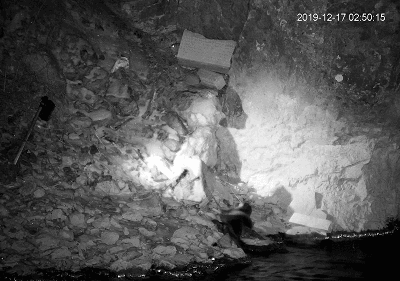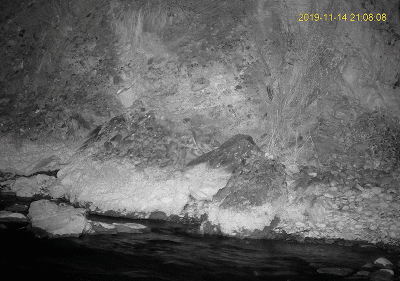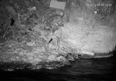 同时,从这段影像中我们可以很清晰地看出,由于受限于流水的干扰,红外相机布设的角度只能朝向陆地,而极为重要的两侧PIR感应也只能关闭,这就导致在很大呈上红外相机的延迟触发和视角局限会导致众多信息的缺失——在看到这段影像之前,我们一直都以为这只是一只水獭……