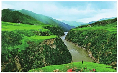 群山环抱的李恰如天池,犹如一块翡翠镶嵌在顶峰,将蓝天白云尽收镜中。九曲黄河由此西折,将草原切割出陡峭的峡谷,将洮河、泽曲河揽入怀抱,一路放歌,奔流而去,造就了令人神往的“黄河第一湾”。险峻的黄河大峡谷、秀丽的金鱼瑞祥双鱼湖、青藏高原唯一的蒙古族亲王府、雪莲盛开的吉冈山,承载着蒙旗大草原厚重的历史,演绎着一次次盛大的“那达慕”草原盛会,流传着一代天骄成吉思汗和英雄格萨尔王子孙后代鲜为人知的故事,传承着虔诚的祭山转湖习俗。