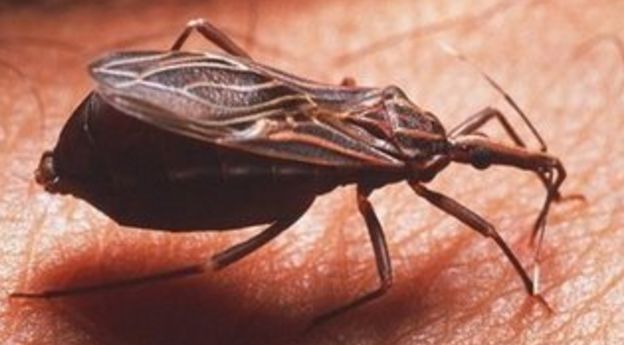 目前通缉令上的锥蝽,主要传播的是美洲锥虫病,又叫克氏锥虫病、查加斯病。锥虫是一种单细胞寄生虫,就像蚊子体内的疟原虫可以让人得上疟疾一样,锥蝽体内的锥虫也可以通过吸血传播。除此之外,锥蝽吸血后排在人身上的排泄物中也有锥虫的幼体,也可以传播疾病。