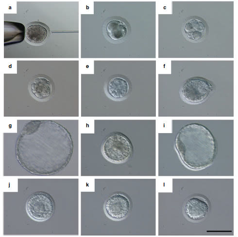然而,科学家们却不甘心。2018年7月5日的《自然——通讯》杂志刊载了德国柏林莱布尼茨动物园等机构的研究成果,文章标题是《来自白犀牛的胚胎和胚胎干细胞》(Embryos and embryonic stem cells from the white rhinoceros)。在此项研究中,具有多年濒危哺乳动物人工繁育经验的科学家Thomas B. Hildebrandt等人,成功地将冷冻保存的北方白犀牛精子与它们的近亲,南方白犀牛的卵子结合,培育出了具有活性的“杂交”白犀牛胚胎。
