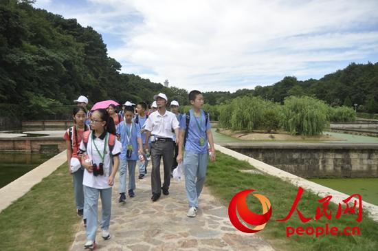 营员们在指导老师带领下参观扬子鳄养殖园区(张萌/人民网)