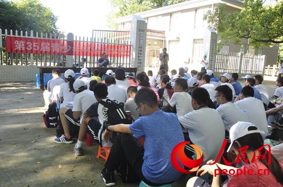 营员在扬子鳄保护区郎溪保护管理站聆听讲座(张萌/人民网)
