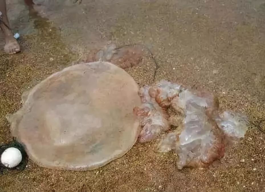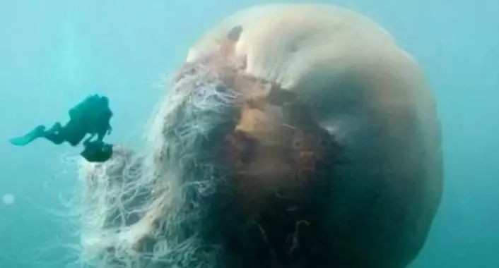 在长三角到日本海地区,有一种直径可以达到两三米,体重220公斤的超大型水母,它就是野村水母,也叫越前水母。它依旧来自我们已经比较熟悉的根口水母目,最可怕的是它们也爱开千人聚会,很多人都被它们弄伤。比一群毒物更可怕的是什么?一群巨大的毒物。