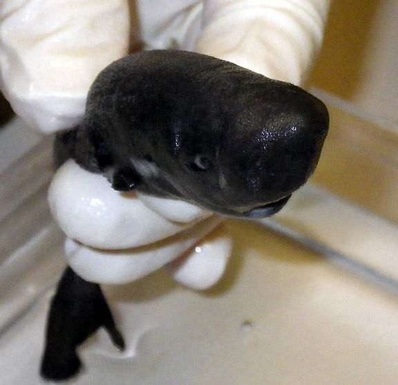 身长14厘米的口袋鲨似乎更小,但是目前全世界只发现过个位数的样本,似乎都是幼年体,还不确定其长大后到底能有多大。不同于其他的大嘴鲨鱼,口袋鲨的嘴巴可以说是樱桃小口,而且胸鳍旁边还有两个口袋,目前还不知道这俩口袋是干啥用的,或许是袋鼠一样的育儿袋。