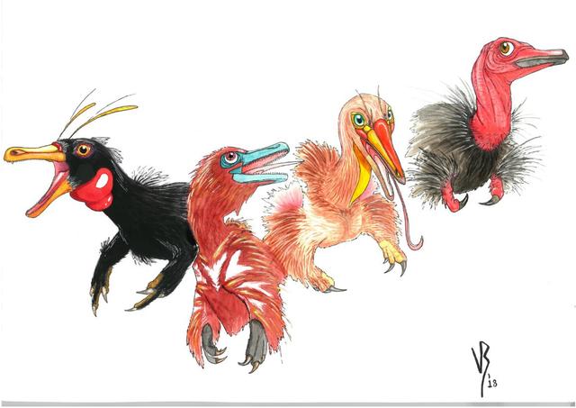 阿尔瓦雷斯龙类代表性物种复原图,展现了前肢的有趣的演化历程。(Vikto Radermacher 绘)