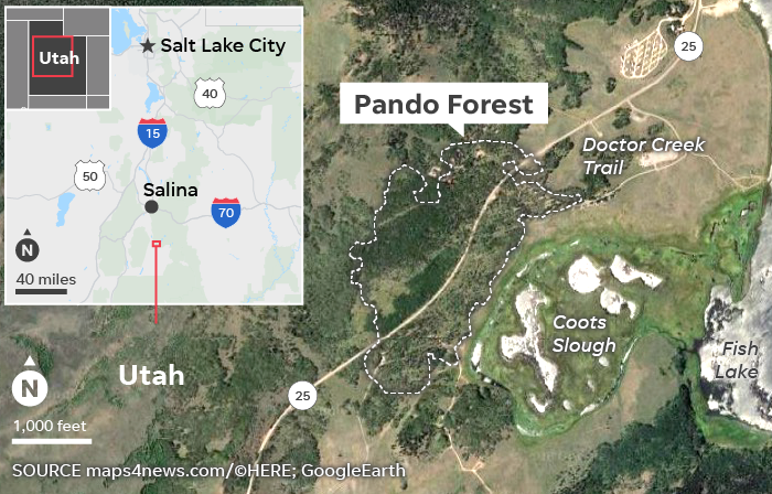 骡鹿喜欢在Pando森林里经常发芽的小树苗上大饱口福。那些幼树突然出现并取代了老化的植物,完成了树木网络持续了数万年的循环,但是鹿正在构成一个严重的问题。人类通过杀死捕杀骡鹿的许多掠食者来影响该地区的自然平衡。由于狼群和大型猫科动物的数量减少,骡鹿种群爆炸,所有这些胃都需要填满。