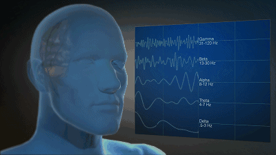 大概没有人没听说过脑电图吧。实际上我们大脑里面的信号传递是以电的形式,在各个神经元之间传播的,而且这个传播还有一个特定的频率。这个频率跟电影的帧数很像的,有12帧,24帧,48帧,还有李安的120帧,说白了就是每秒切换多少张照片。我们的大脑里的神经细胞,也是以固定的频率在刷频,如果他们不按照固定的频率来,各搞各的,估计我们应该是处于精神错乱状态。换成电影的话,就是我们经常看到的花屏。