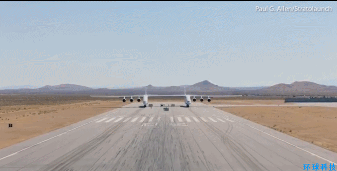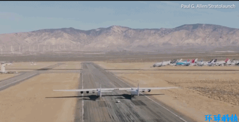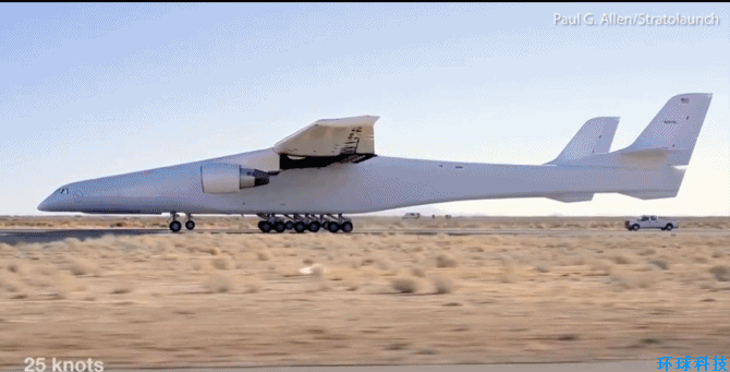 Stratolaunch是一架巨型双身飞机,机翼展117米,与足球场的长度相当。据美国科技媒体The Verge报道,Stratolaunch净重约50万磅(约合226.8吨),最大起飞重量为130万磅(约合589.7吨)。工程师们于去年12月份对Stratolaunch进行了首次低速滑行测试,在该测试中,Stratolaunch只达到了25节(45km/h)的速度。在最近的低速滑行测试中,公司发动6架普惠(Pratt & Whitney)喷气引擎(每架引擎约重4055kg),飞机以40节(约74km/h)的速度在跑道上滑行。