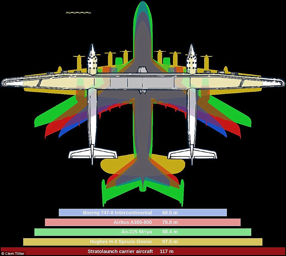 这架飞机是微软联合创始人保罗•艾伦的杰作,他希望Stratolaunch能像空中的巨大气垫一样,使载荷更快地到达太空,而且比现有技术成本要低。Stratolaunch可在两个机身中间搭载火箭。一旦完成测试,Stratolaunch协助将卫星和其他物体发射到太空中,包括“追梦者”宇宙飞船,该宇宙飞船可在24小时内搭载宇航员或有效载荷在近地轨道间来回穿梭。