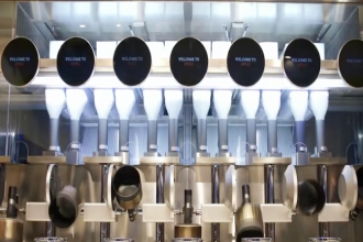 Spyce厨房基本上是一台机器,这台机器装满了准备好的原料、蔬菜、蛋白质和谷物。它每接受一个订单,就开始合适地配置每种配料,然后将它们放入一个鼓状的炒锅中。锅在电炉上慢慢转动,将食物加热理想的温度,接着将食物倒入一次性的碗中。