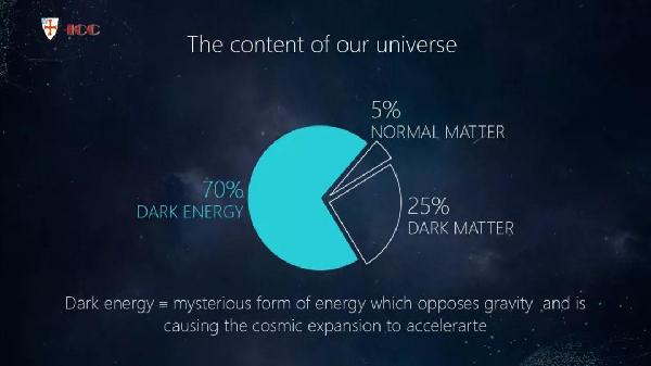 我们知道宇宙已经有137亿年的历史,过去20年里宇宙学又研究了什么呢?宇宙学主要研究宇宙是由什么组成的。宇宙由5%的普通物质组成,比如原子,原子是行星、恒星基础的组成物质。还有25%的成份是暗物质,这些暗物质不会产生任何类型的光,但是在宇宙的演化过程却中扮演了重要角色。另外70%是由暗能量组成,这种力量让宇宙以越来越快的速度膨胀。我们对于普通物质和暗物质已经了解了不少,但是对于暗能量的了解是非常有限的,未来的科学家需要解决的问题还有很多。