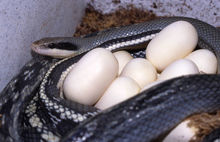 黑眉锦蛇每年5月左右交配,6~7月产卵,每次产卵6~12枚。孵化期约为35~50天,但卵的孵化受温度影响很大,个别最长者可达2个月之久。但基本上8月~9月幼蛇均出壳,宠物市场上会出现大量的黑眉苗。