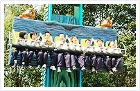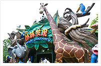 在动物园里有一个精致的“园中园”,那就是根据动物造型全新打造的“儿童天地”。儿童天地正门的造型被设计成长颈鹿伸着脖子和大象的鼻子“握手”,神奇魔幻之极。走进儿童天地,仿佛爱丽丝梦游仙境,传统的旋转木马,全换成了形态各异的大鸟,有奔走的鸵鸟,还有飞翔的鹦鹉;旁边的转车也变成了狮子和老虎追逐游戏,可爱的转车造型让小朋友和大朋友流连忘返。