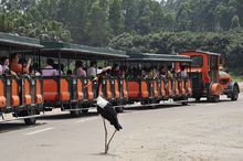 游园分两部分,一是步行区,二是乘车游览区。步行区主要自由看动物)。乘车游览是坐园里的小火车游览(免费),约40分钟,十分惬意。所以整个游园时间主要是在步行区活动。