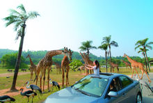 广州长隆野生动物世界在全国率先推出"与兽同行"自驾车观赏野生动物项目,在园内开辟占地面积近100万平方米自驾区观赏范围。自驾区倚山而建,围水而雕,形成了独特的自然景观。自驾车游览区的景观设计完全按照动物的生活地域和习性打造,改变“园”的圈养方式,突出“区”的地域概念,全开放的空间,动物自由自在的生活,让人和动物在安全和休闲的状态下,互相看见,游客可以和动物擦身而过,进入动物的地盘,体验与兽同行的乐趣,是人与动物和谐相处的名副其实的动物世界。在2012年乘车区全新升级,打造澳洲森林,美洲丛林,西亚荒漠,南亚雨林,欧洲山地五大新区!不出国门,乘车轻松穿越五大洲,看遍世界珍奇动物。
