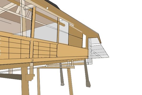 我国古代木构建筑大体分为穿斗式、抬梁式和井干式三种形式。土家族的吊脚楼采用穿斗式构架,所谓穿斗式,又称立贴式,是用柱、骑承檩直接负担屋顶的重量,柱与骑之间用穿枋贯通连接,构成立贴,再用横枋将几排立贴连接,构成整座房屋的柱网构架。这种穿斗式构造方法在汉代就趋近成熟,具有省工省料、经济适用、结构稳定、防震性好等特点,是我国南方民居最常见的形式。