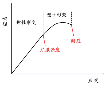 图3、典型材料的拉伸形变同应力之间的关系。此图明确表明应力是应变的函数, 是由形变引起的。