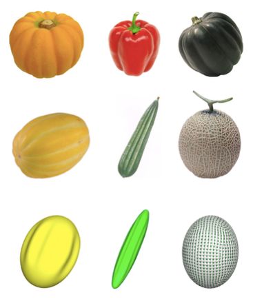 图5、 自然瓜果的外观同应力屈曲模型计算结果的比较(参阅Ref.[9])