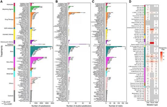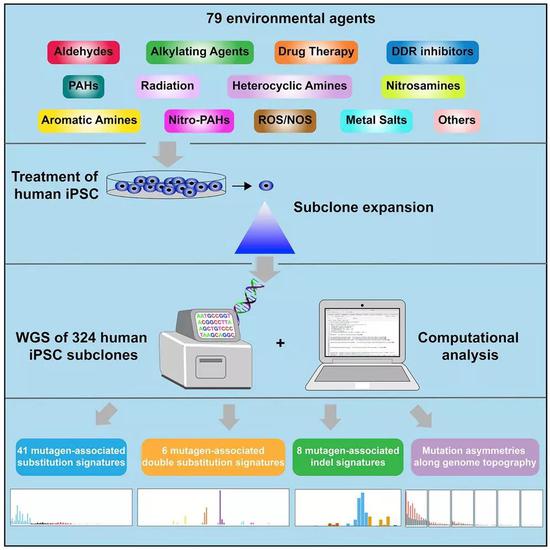 于是,David H.Phillips教授和他的合作伙伴们,挑选了79种致癌物质或环境因素(包括光辐射,化学致癌物,化疗药物等等),用它们分别处理人诱导性多能干细胞,寻找致癌物质在DNA中留下的独特犯罪标记。