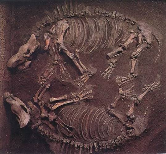 同一化石坑埋藏的两具披毛犀全身骨骼化石 来源:内蒙古博物院