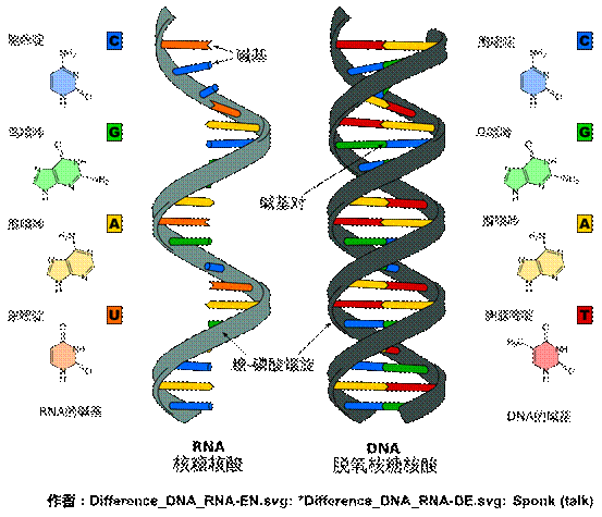 DNA和RNA的结构对比,作者见图