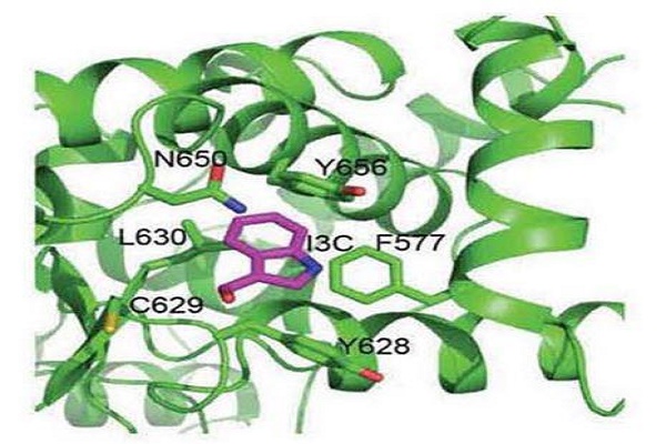 WWP1的蛋白构象,紫色部分显示了I3C可以结合的区域。