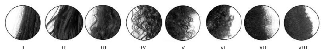 8个不同等级的卷发程度图源,文献1