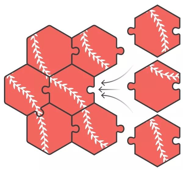 事实上,比如说对于任一给定由六边形组合成的图形,都可能有三个六边形和它匹配。因此,仅通过外形进行匹配,你的正确率只有33.33%。然而,如果你可以找到另一个组合图形,它可以和你事先连接好的七个六边形匹配,那么你的正确率将增加。让我们尝试量化正确率增加多少。