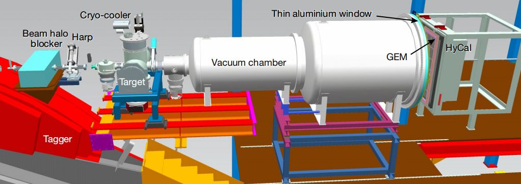 实验装置图。最右侧的混合式量热计(HYCAL),是提升实验精度的关键之一。