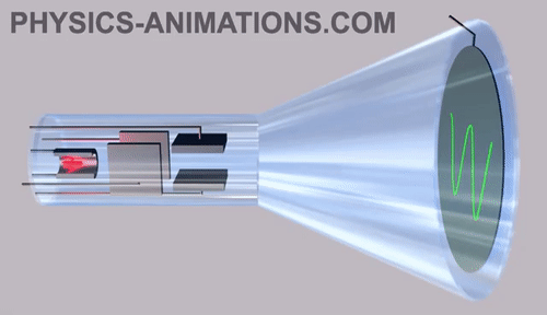 而在这之前,还有一种叫做阴极射线显像管(俗称大脑袋电视)的显示器。在阴极射线管中,“阴极”其实是加热的灯丝。加热的灯丝处于真空的玻璃管中,然后加热灯丝产生电子束。而它的工作原理就是靠电子束激发屏幕内表面的荧光粉来显示图像的,由于荧光粉被点亮后很快就会熄灭,所以电子枪必须循环地激发这些点。而长长的”脑袋“那里经常是高考物理的一个大题。
