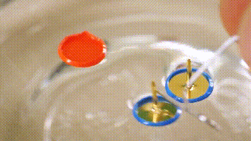 其实,不止是谷物圈和泡沫这种密度比水小的物体,那些密度比水大的物体也能产生类似的现象。比如,若你让几枚图钉或曲别针漂在水面,它们靠近时也会相互吸引。但当一枚图钉与一粒谷物圈相遇,则会相互排斥。