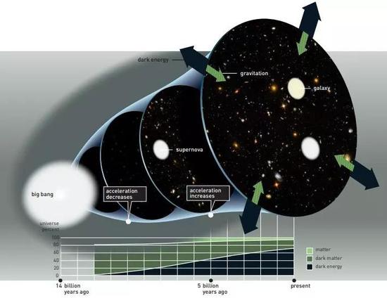 按照目前的认识,宇宙早期减速膨胀,并在约50亿年前开始加速膨胀。